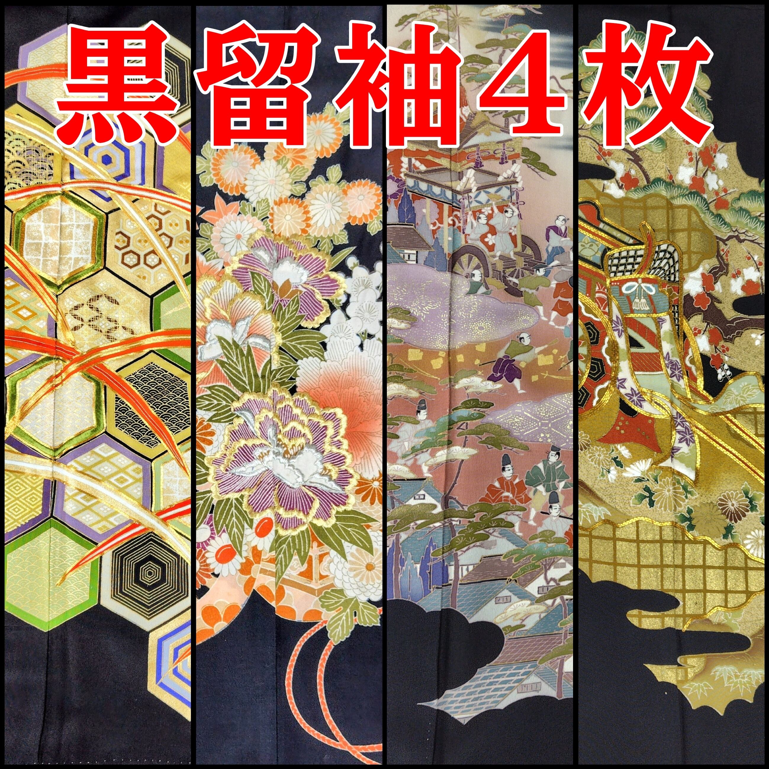 【6000円均一】黒留袖 4枚 まとめ売り リユース リサイクル しつけ付き 作家もの 落款 友禅 金彩 金駒刺繍 亀甲つなぎ 芝草 紅葉 菊 芍薬 牡丹 風景 祇園祭 華尽くし 松竹梅 御所車 吉祥文様 有職文様
