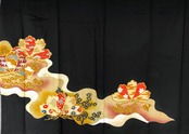 御所車に松竹梅や牡丹、橘が散りばめられた文様