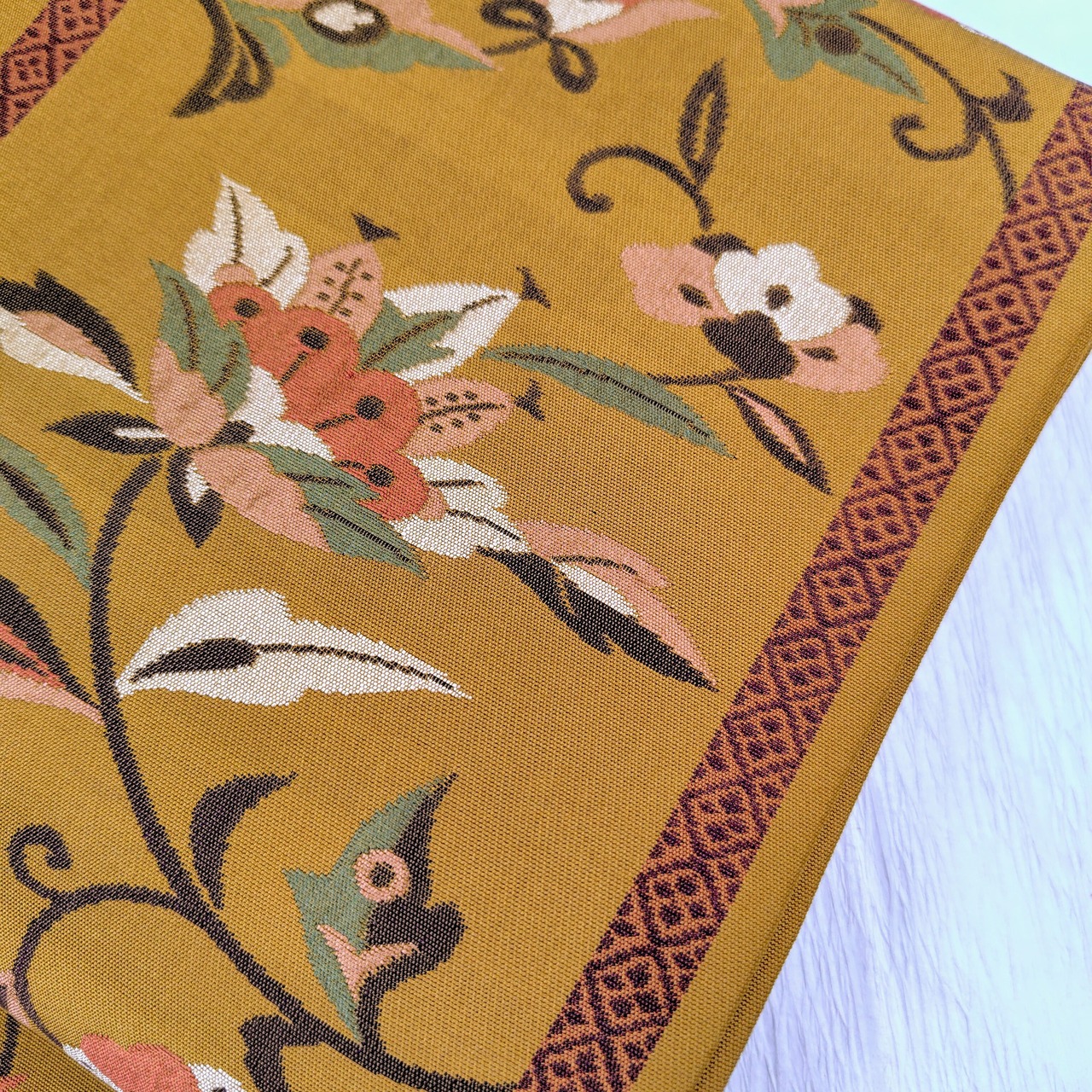 黄土色の古典な草花柄の袋帯