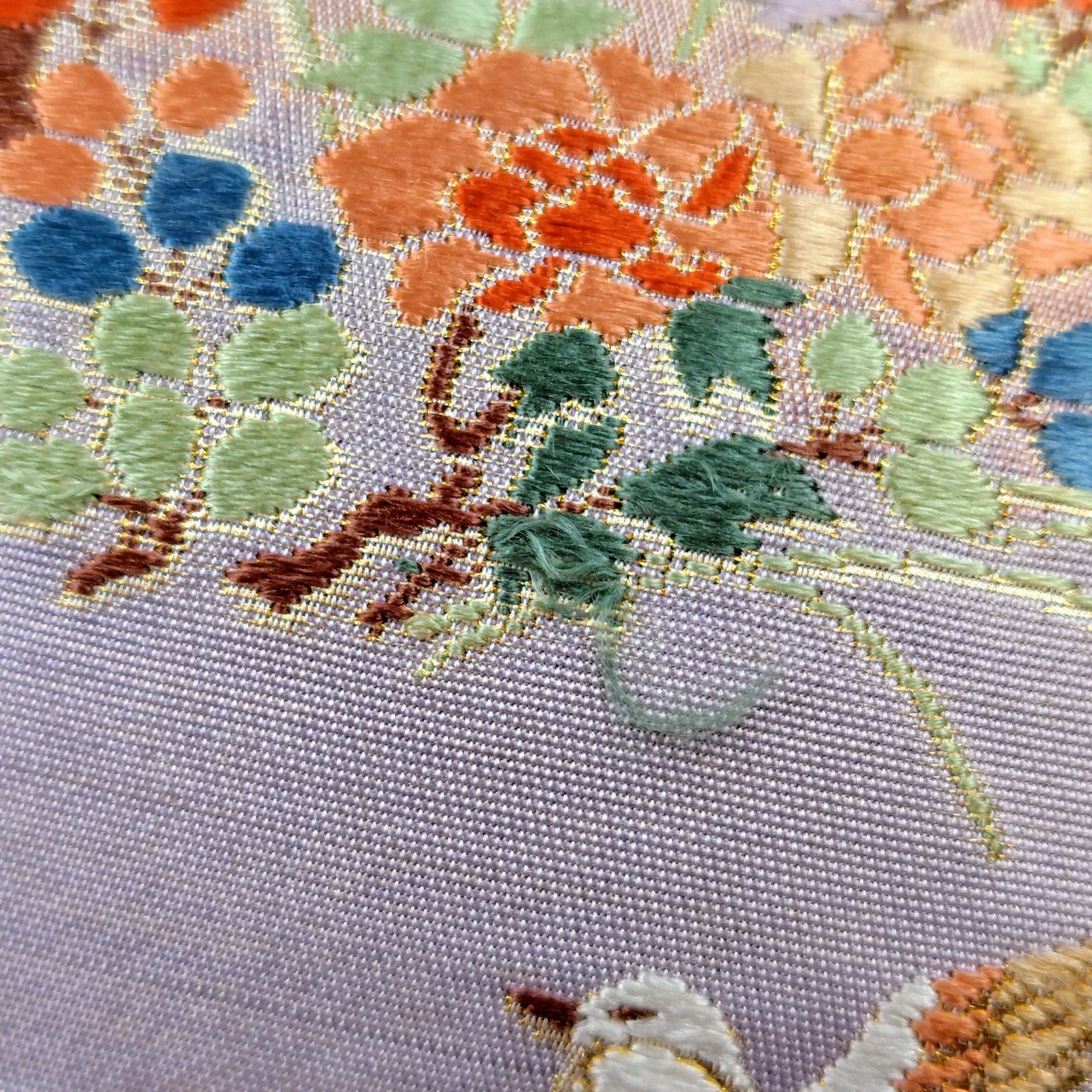 鴛鴦や藤や桜などの花が散りばめられた とても豪華な袋帯