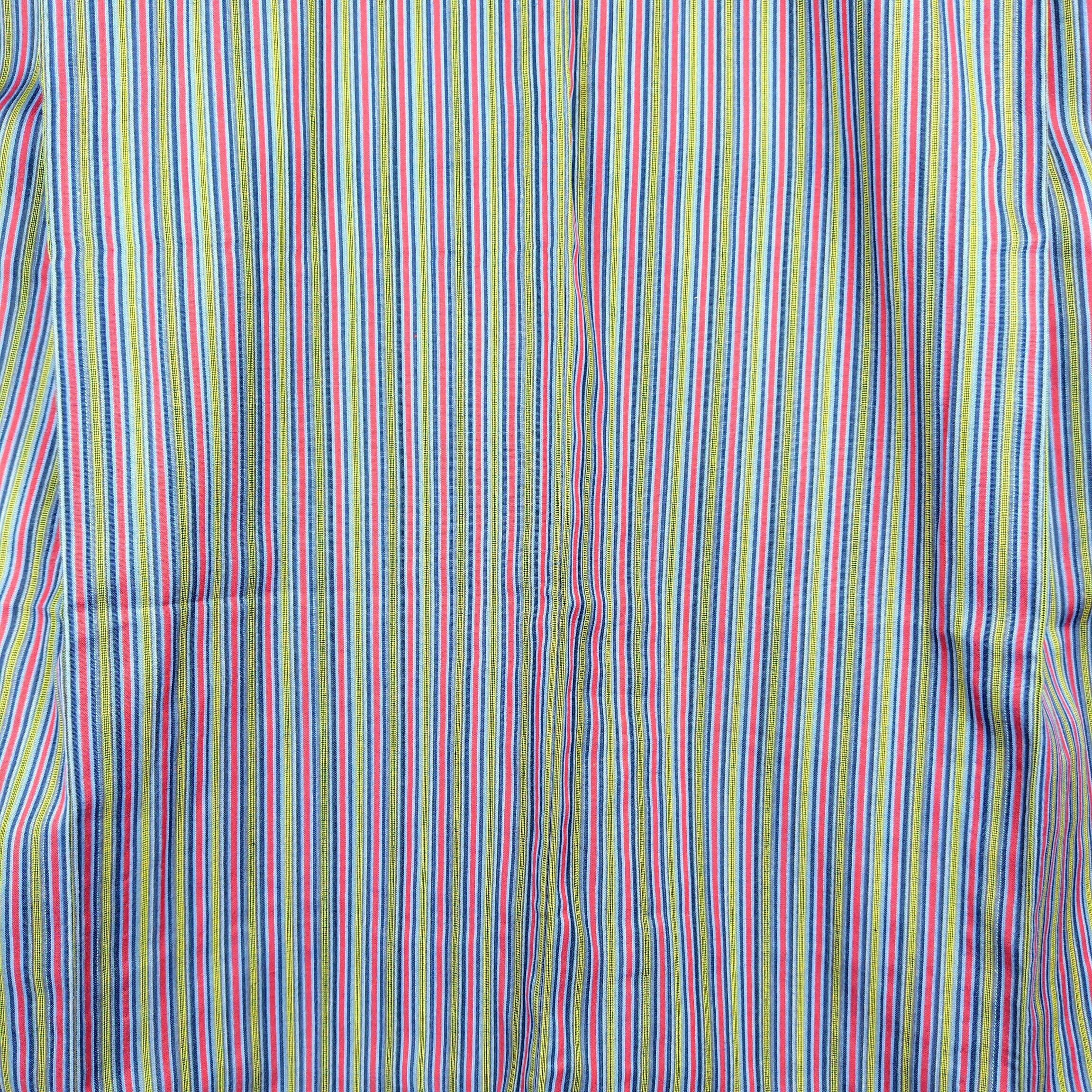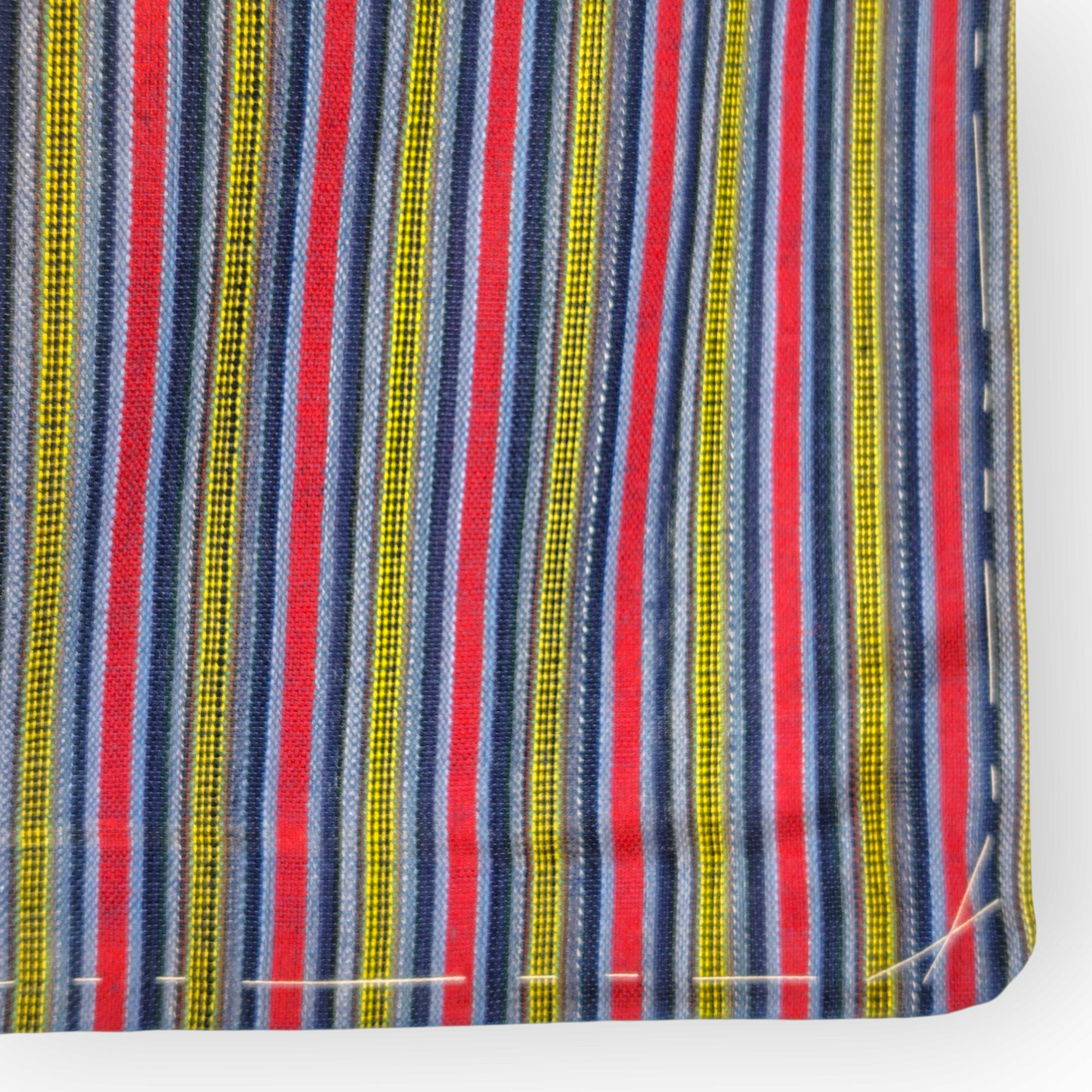 美しい青と黄色の矢鱈縞が特徴の単衣の紬