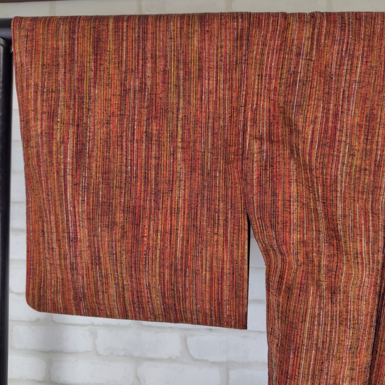 赤茶色の硬めの生地で仕立てられた単衣の紬です♪