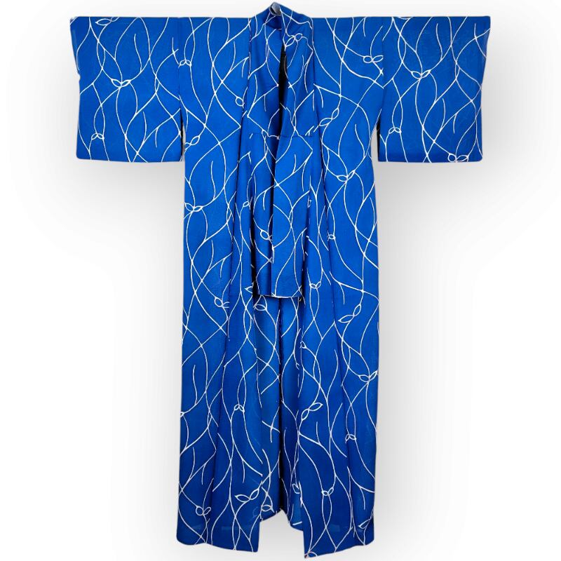 この美しい青の絽の小紋を手に入れて、夏の素敵なコーディネートを楽しんでください!