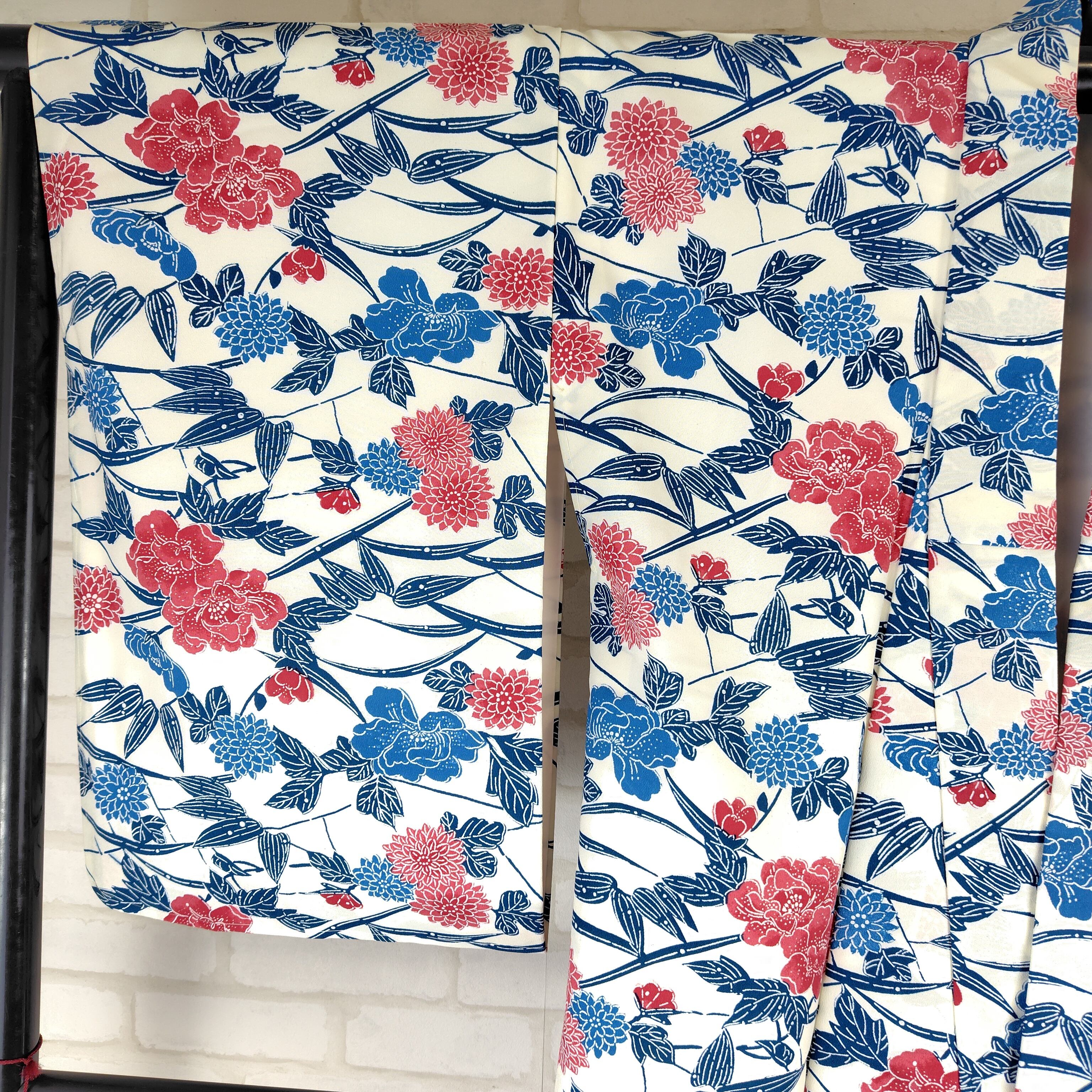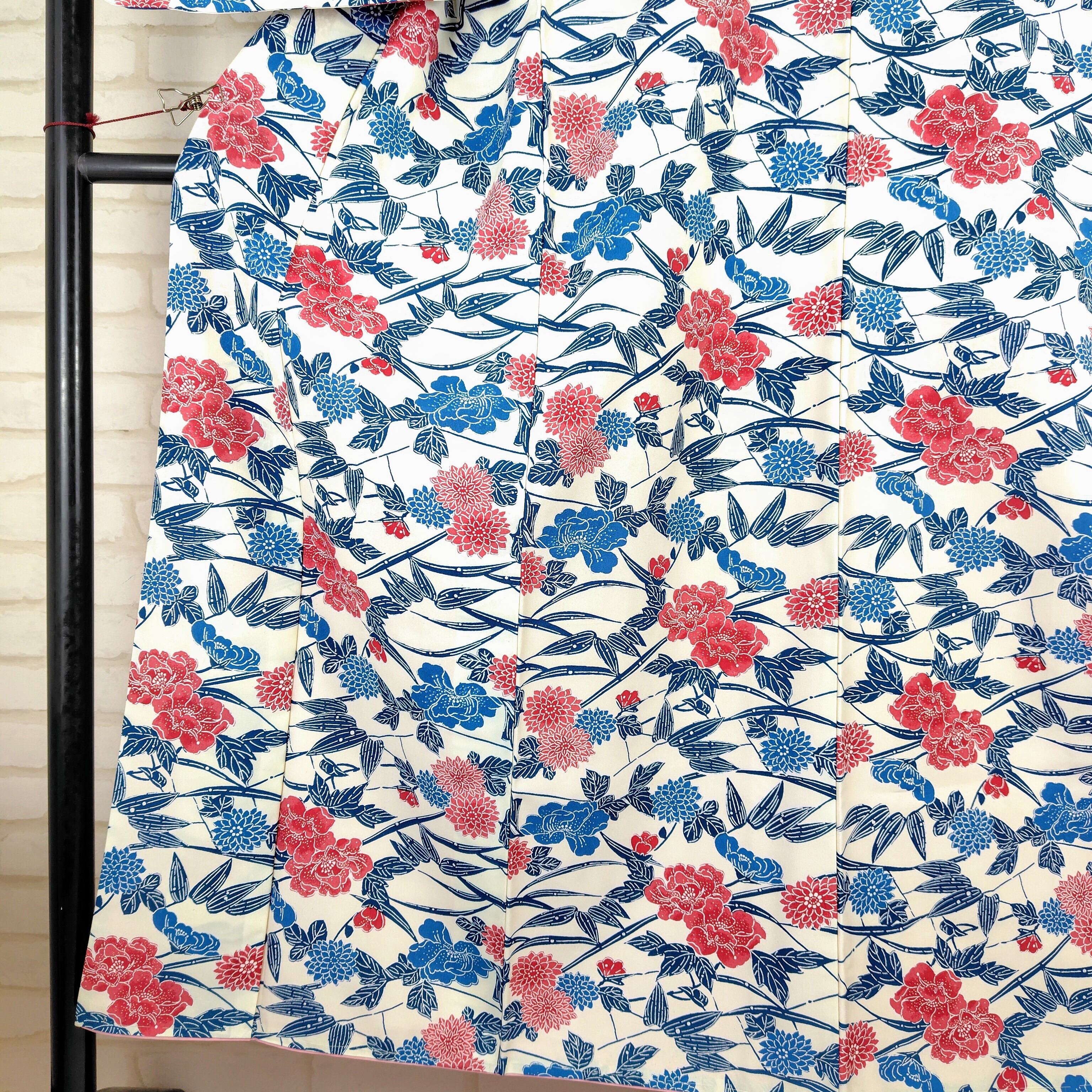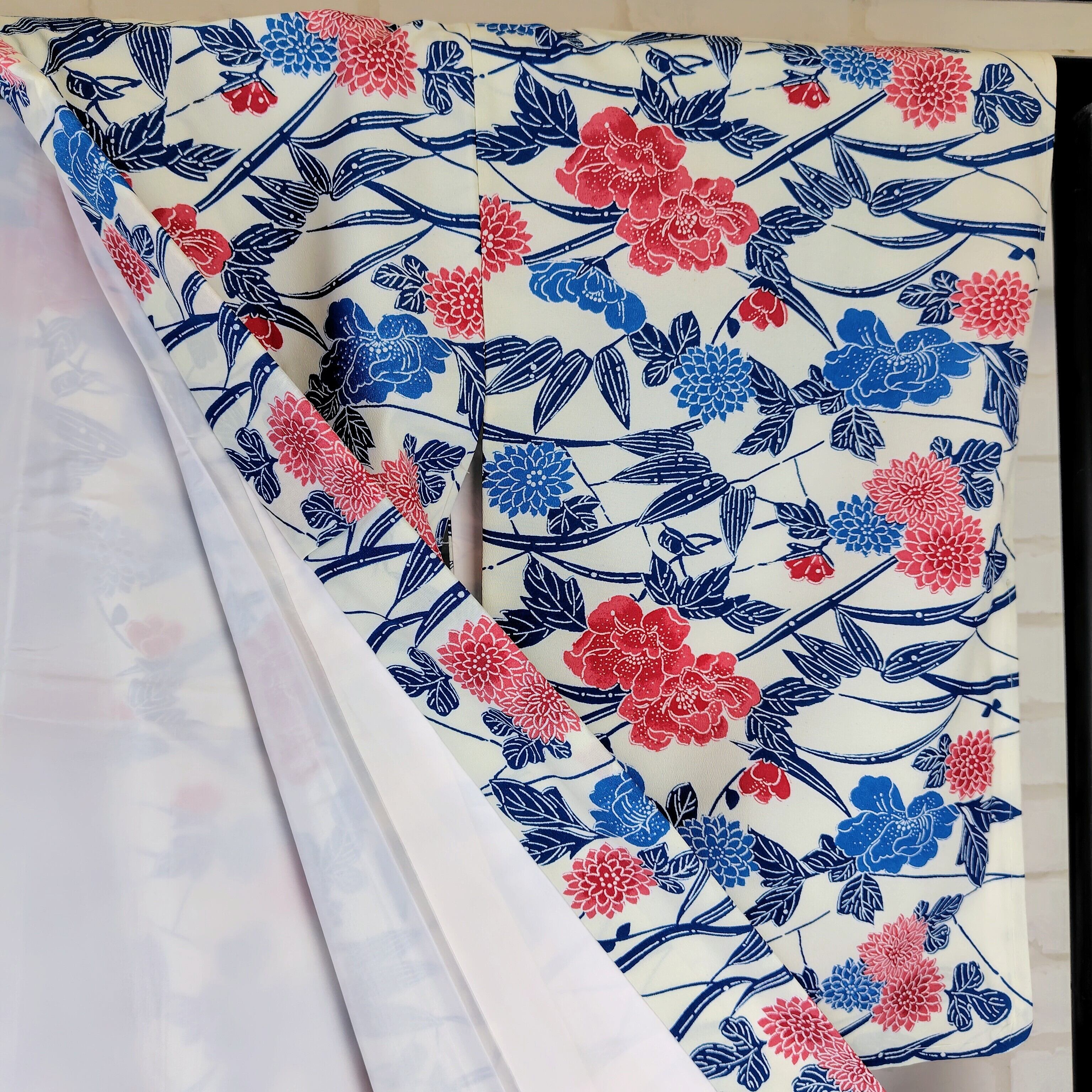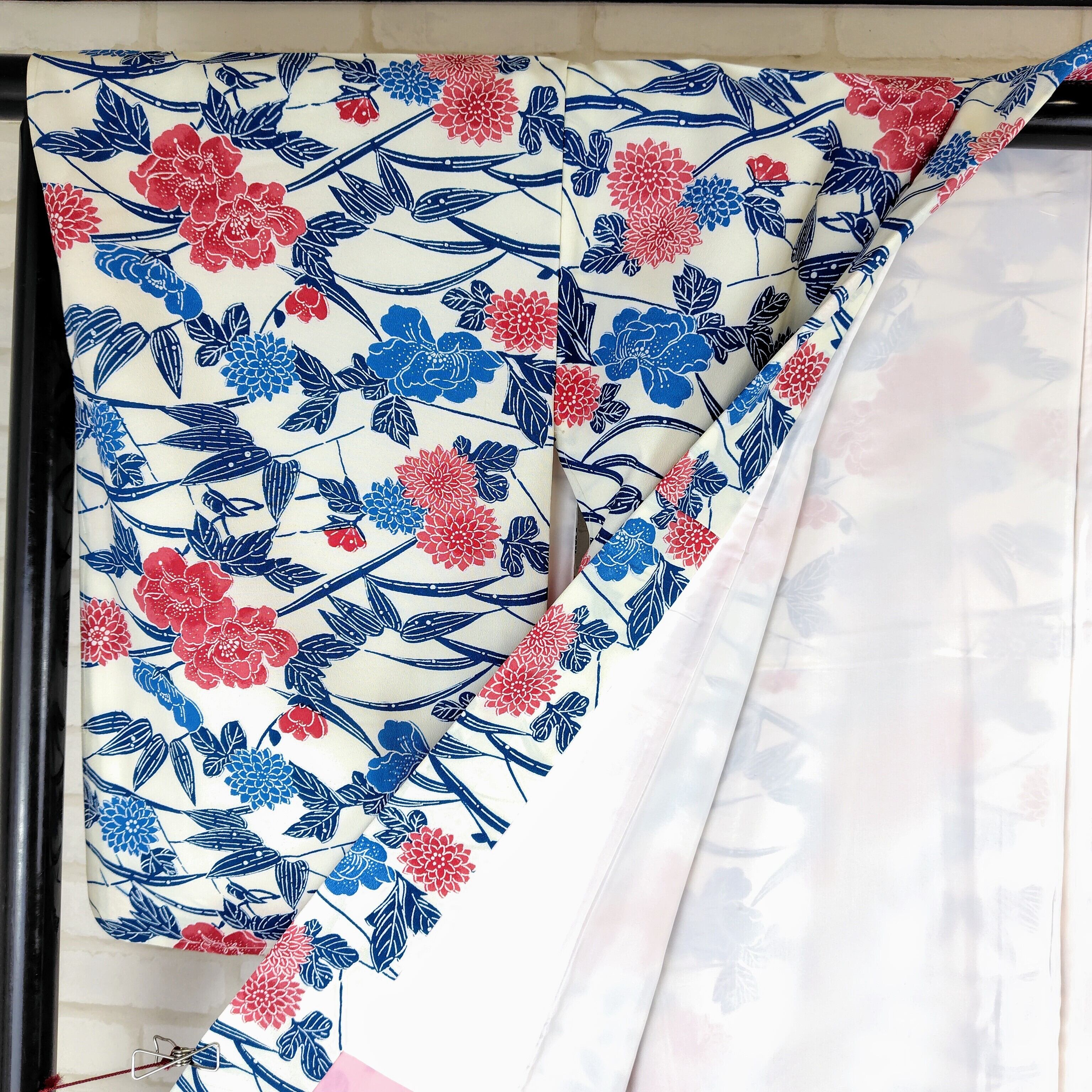 この美しく華やかな紅型風の着物で、特別なコーディネートを楽しんでください!