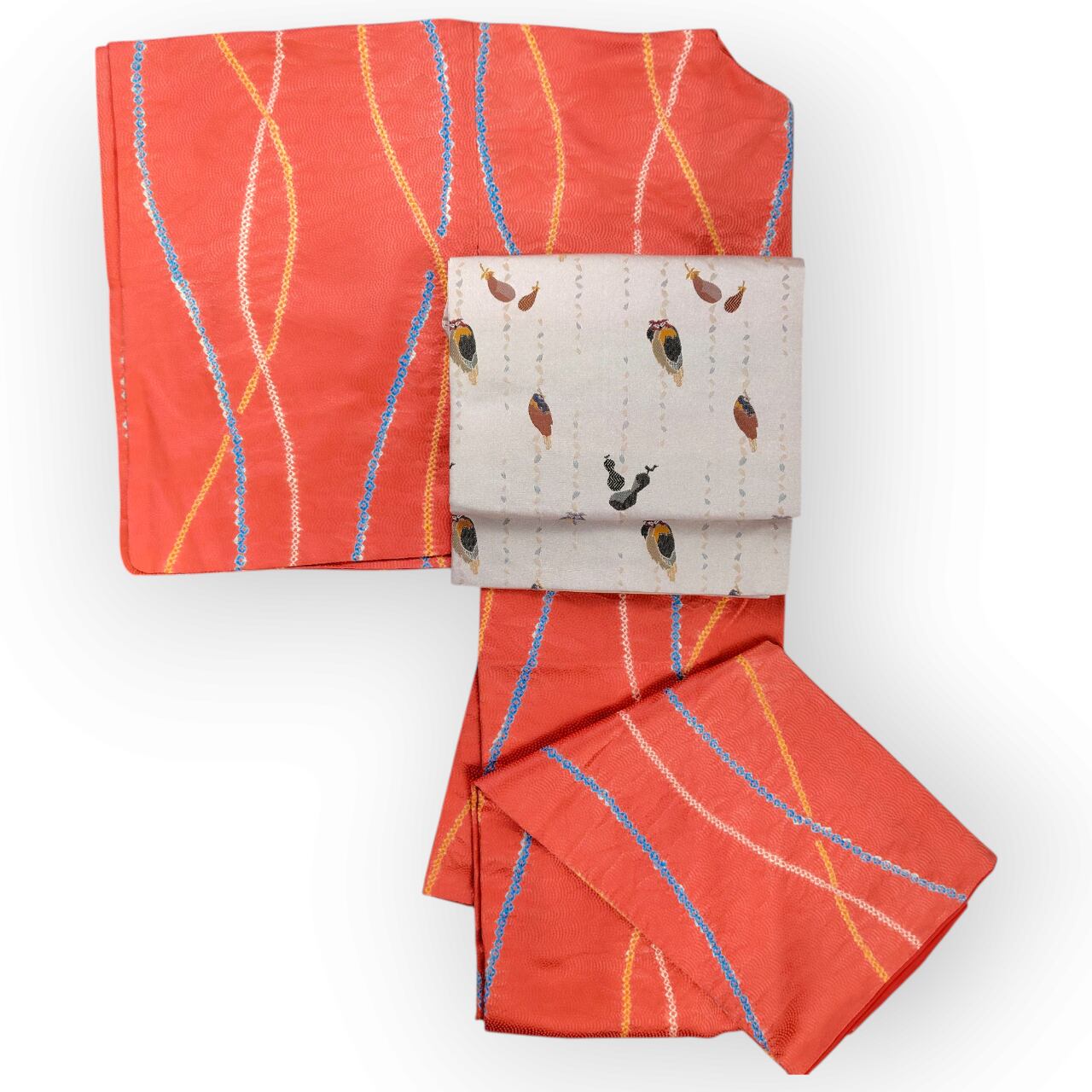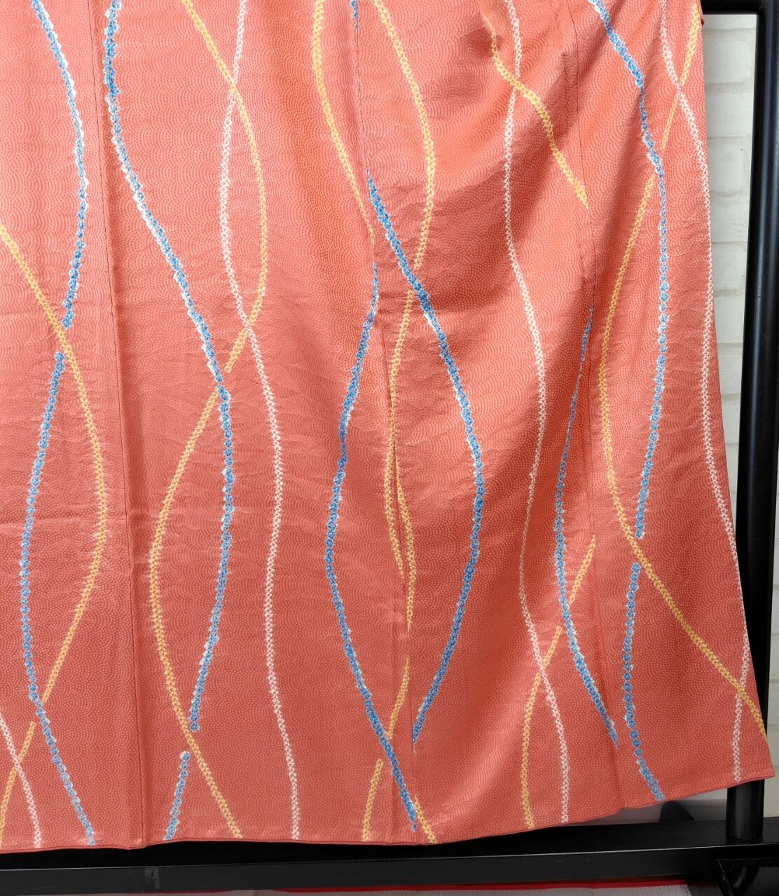 この美しいサーモンピンクの袷小紋を手に入れて、春の素敵なコーディネートを楽しんでください!