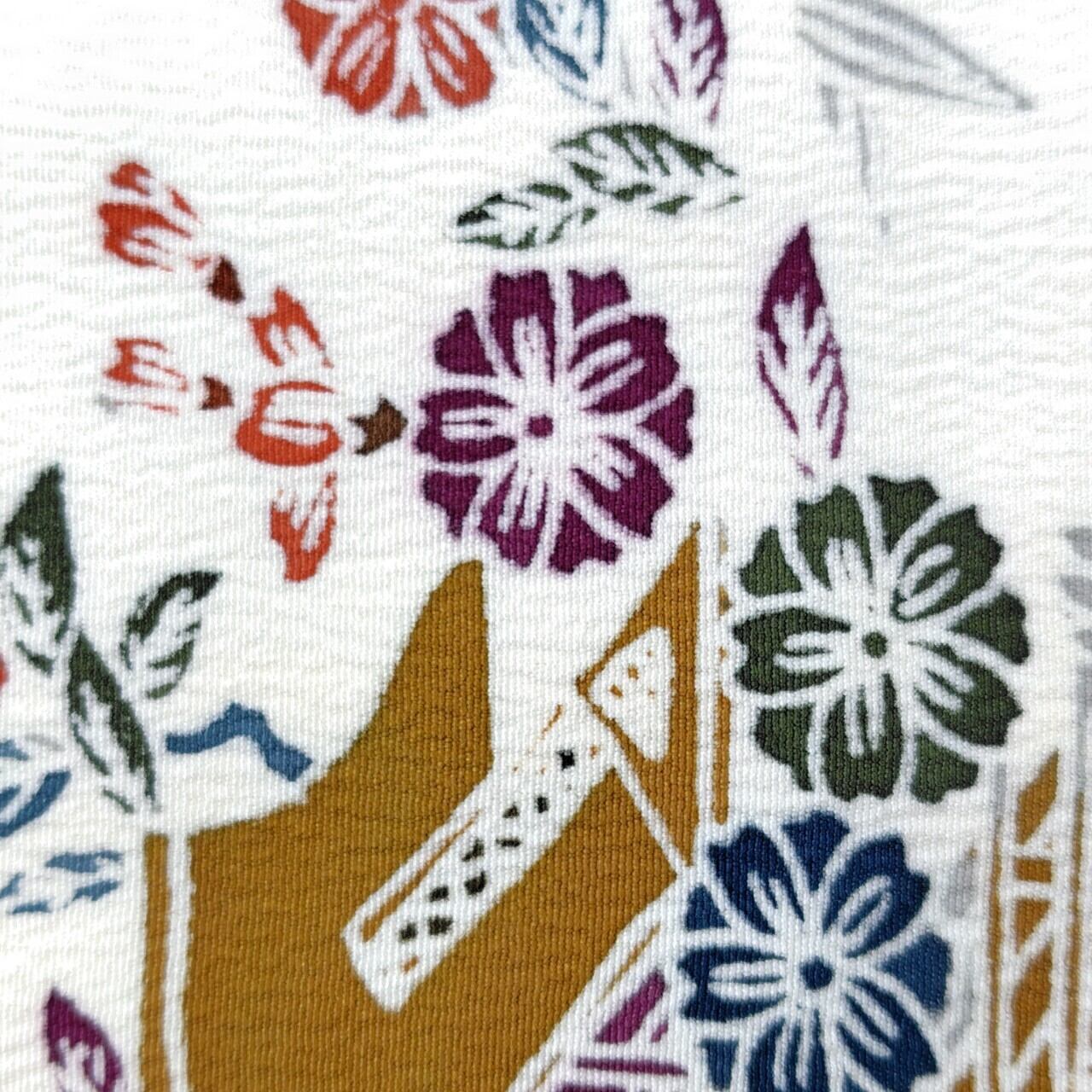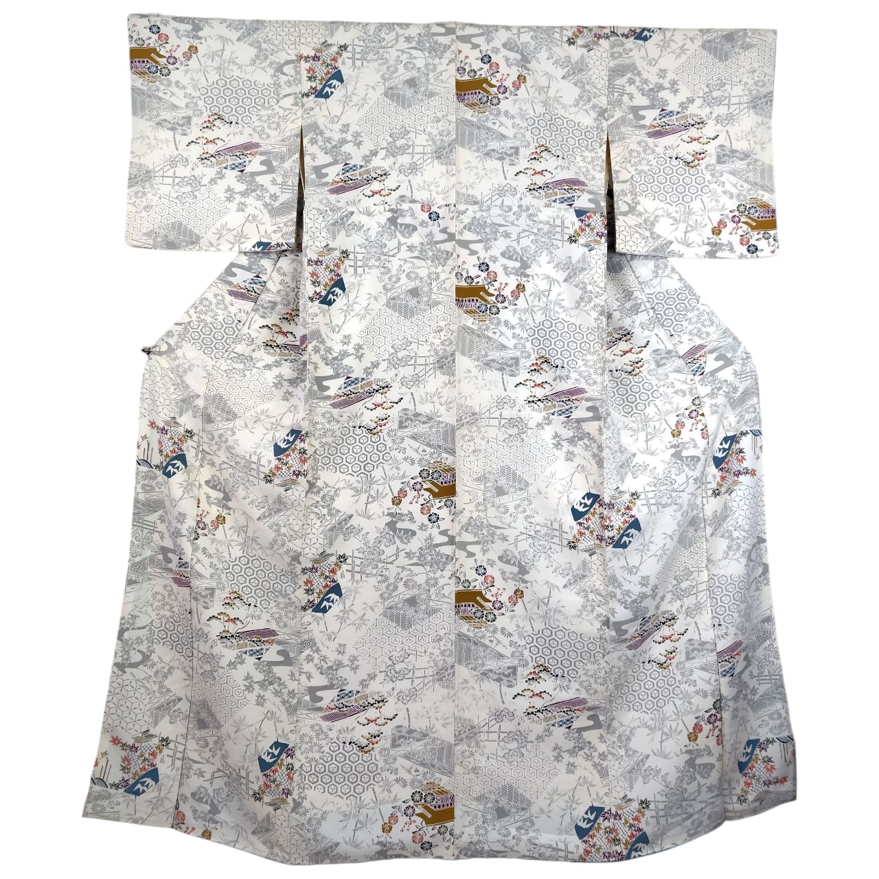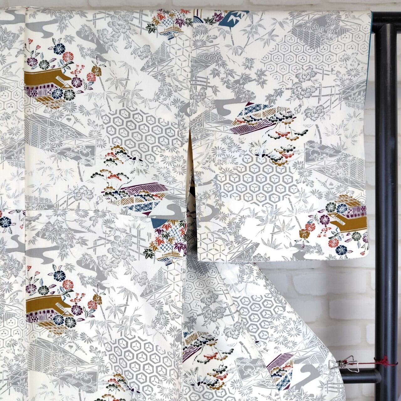 可愛らしいクリーム色の正絹袷小紋、型染めの裂取り柄が特徴です♪