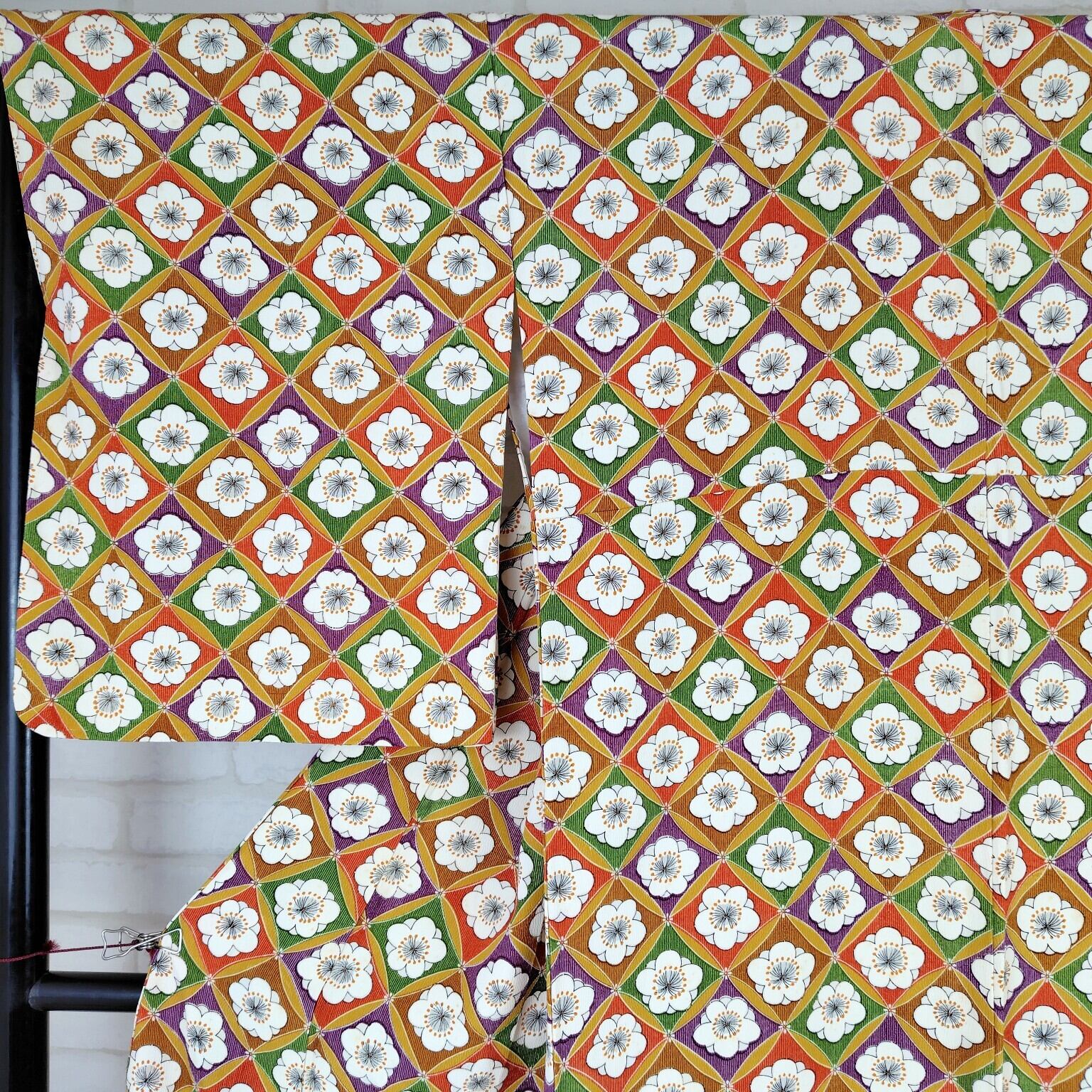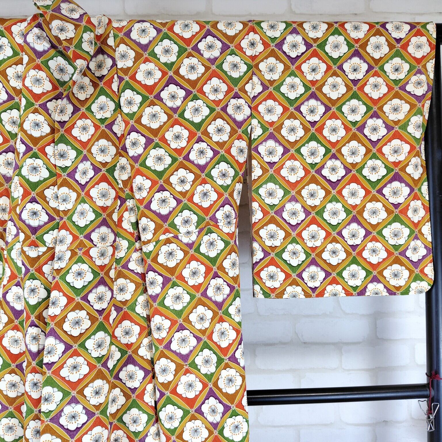 この美しい七宝に梅の袷小紋を手に入れて、素敵なおしゃれを楽しんでください!