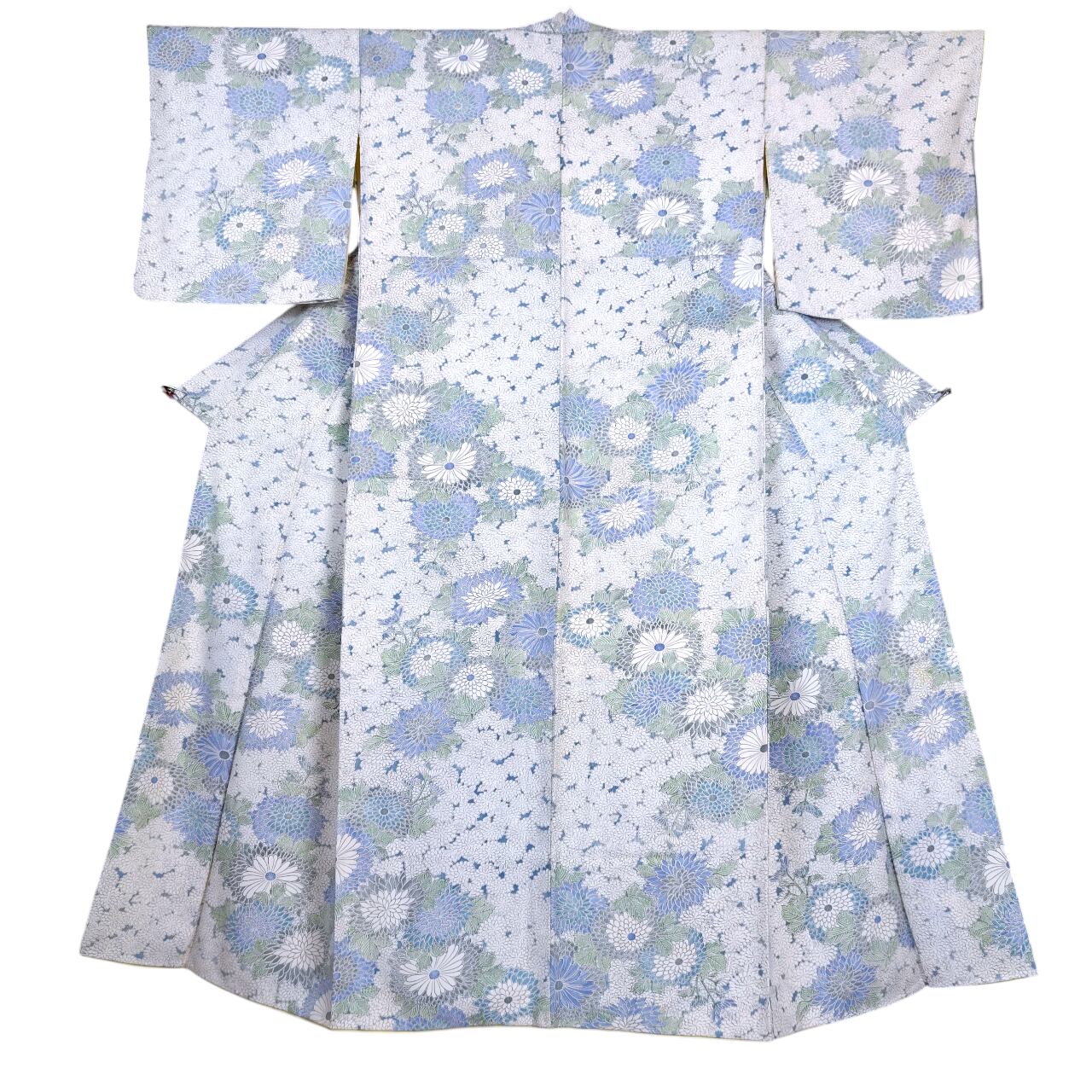 柔らかな白地に華やかな白菊文が散りばめられた袷の小紋が登場しました♪