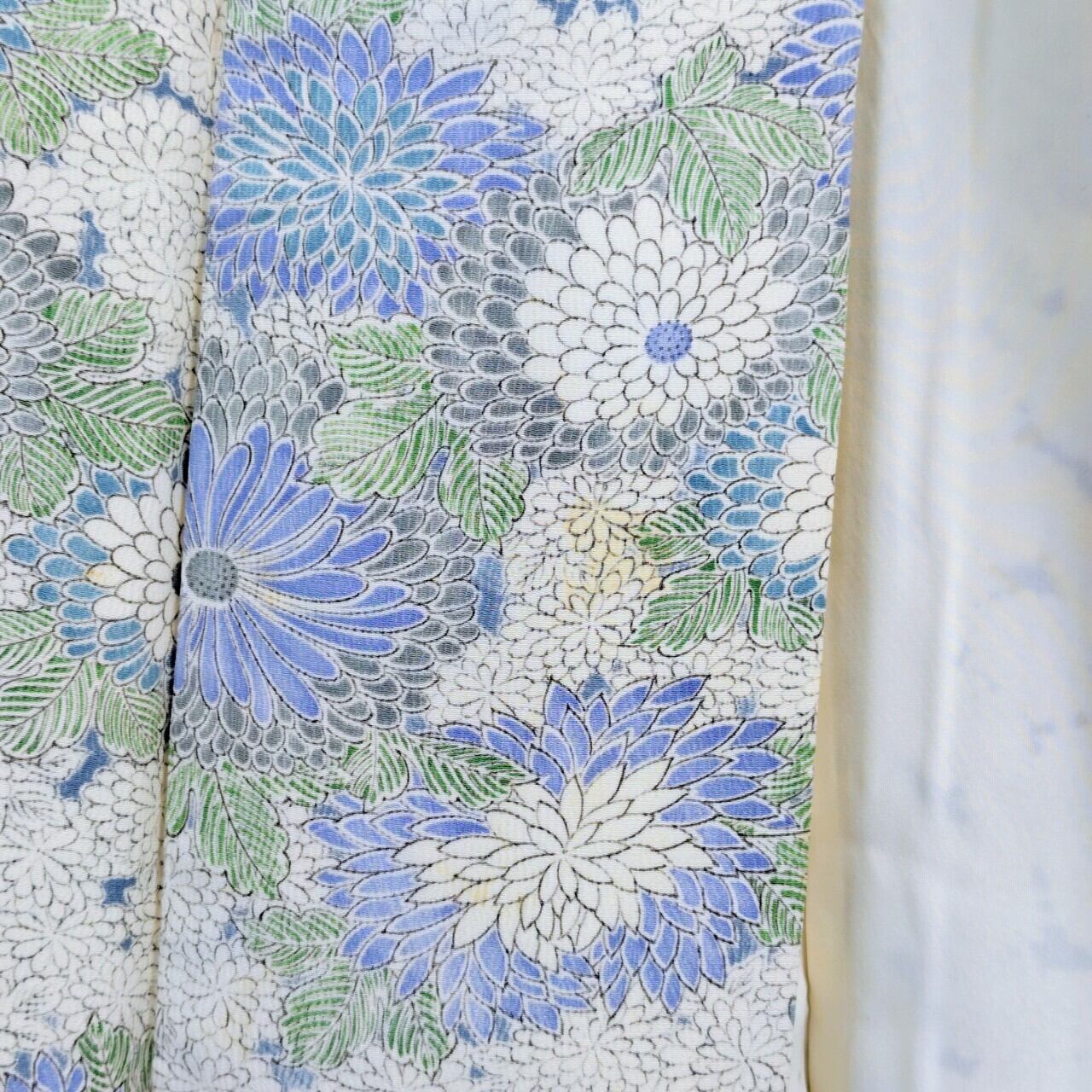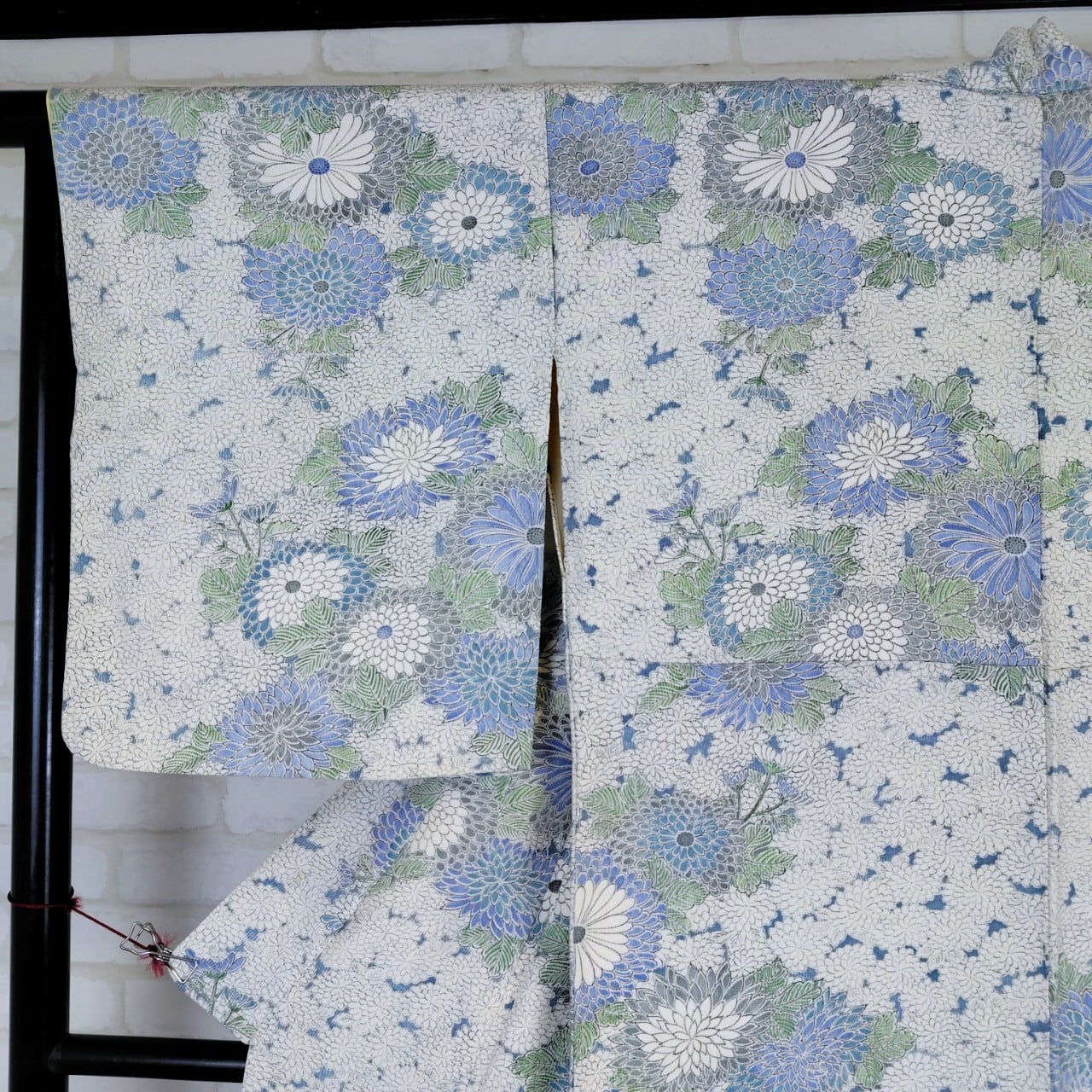 この美しい白地に白菊文の小紋で、自由におしゃれを楽しんでみてください!
