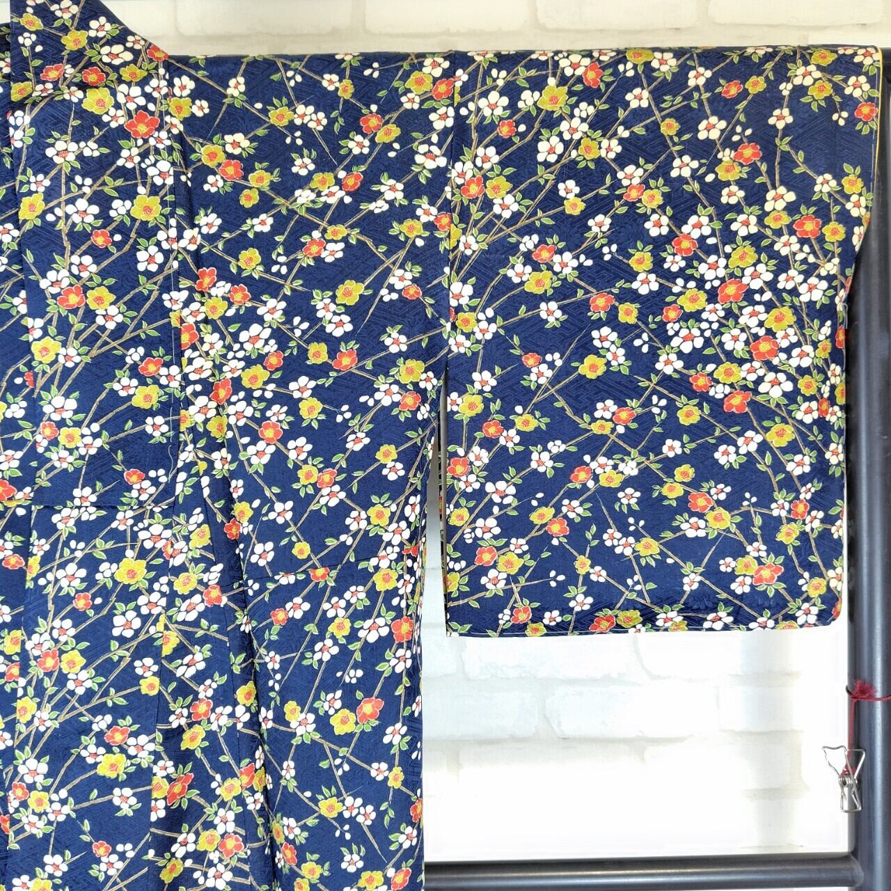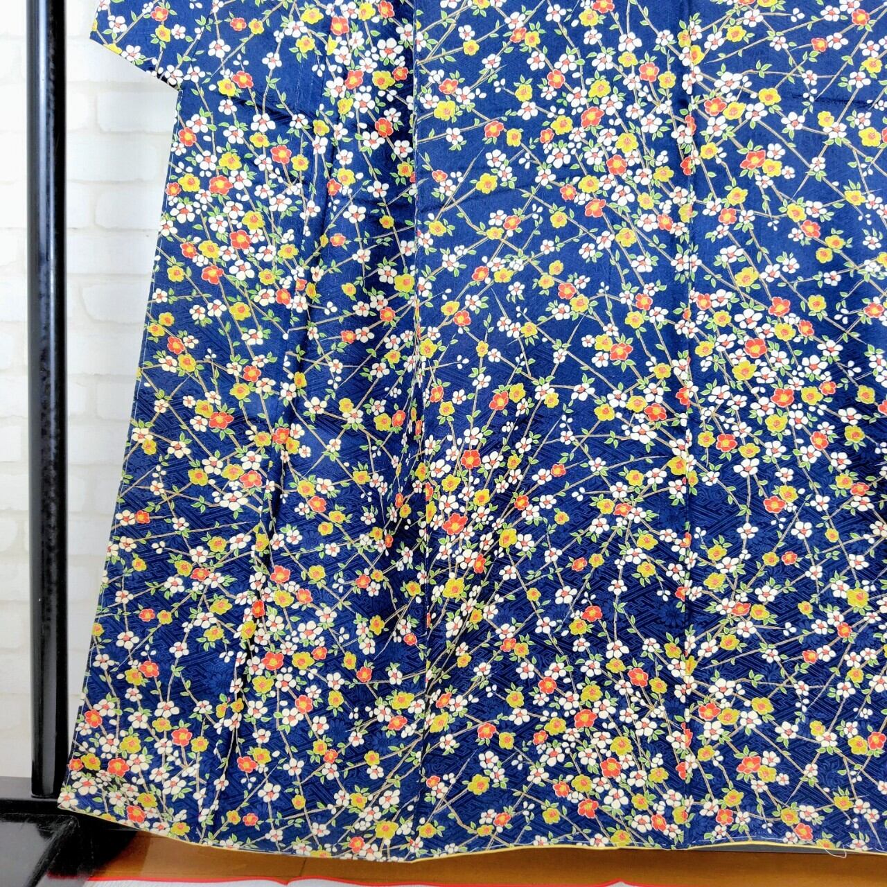 紺地に梅柄が美しく広がる袷の小紋が登場しました♪