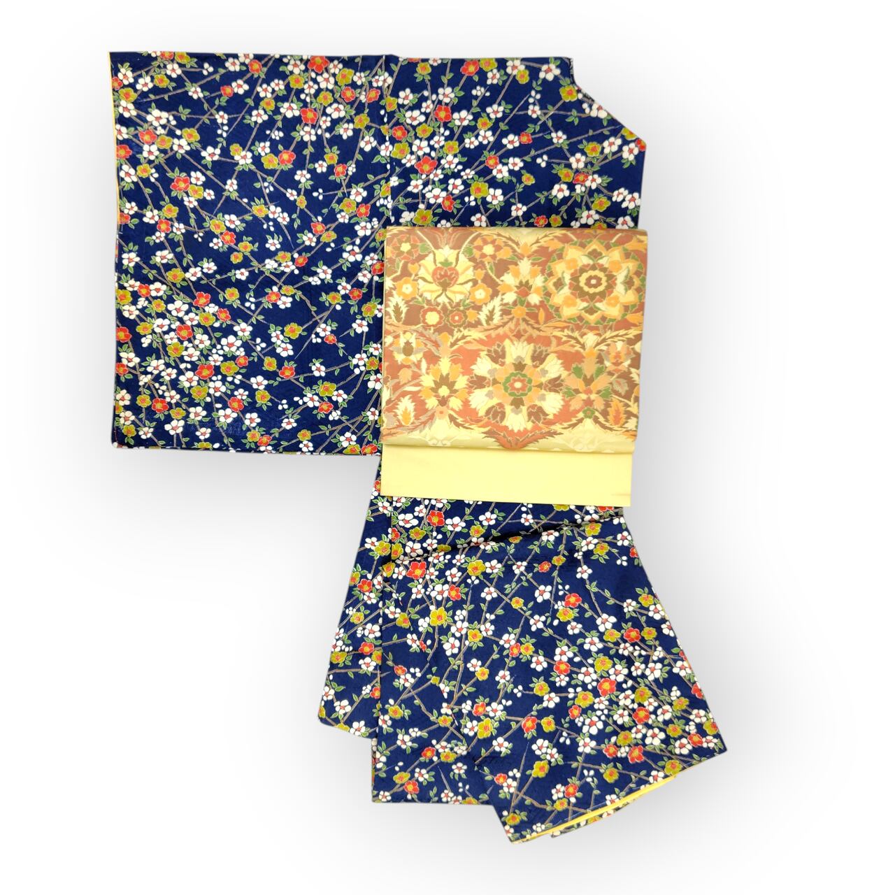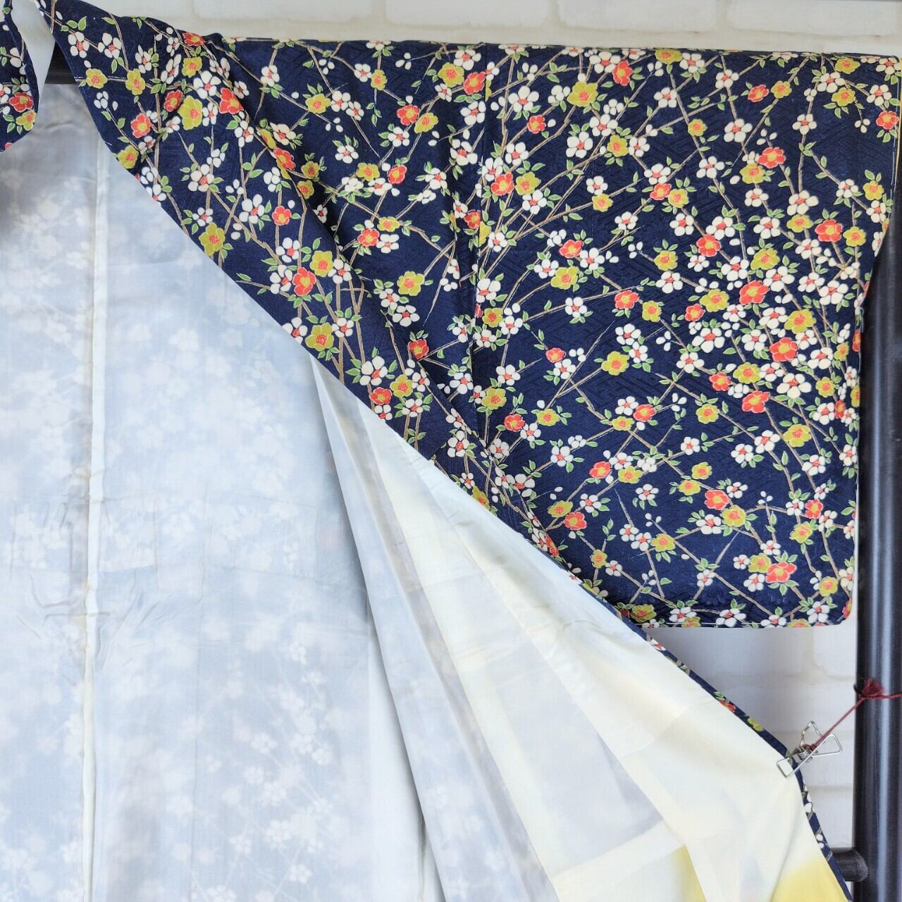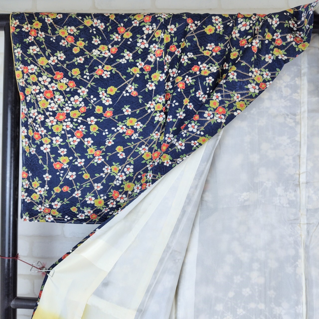 この小紋は、深みのある紺色に梅尽くしのデザインが特徴で、特別な日から普段のお出かけまで、あなたの魅力を引き立ててくれます!