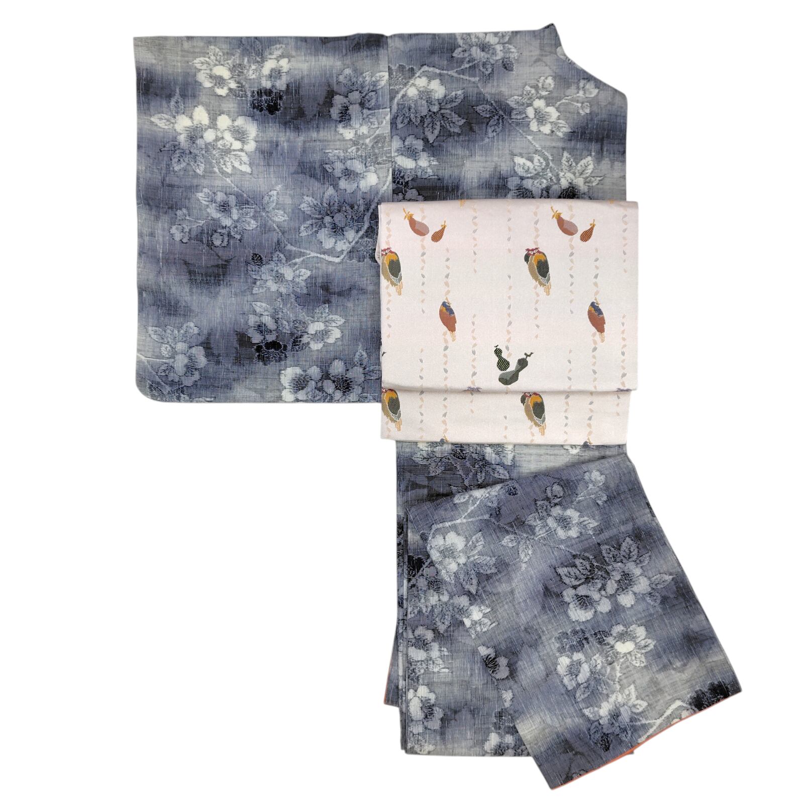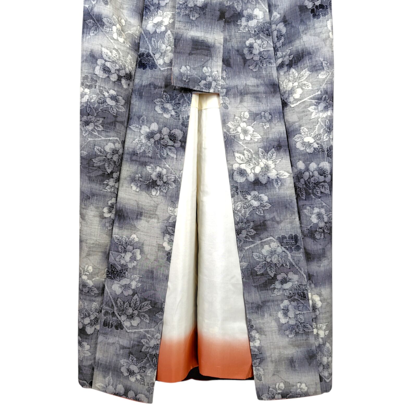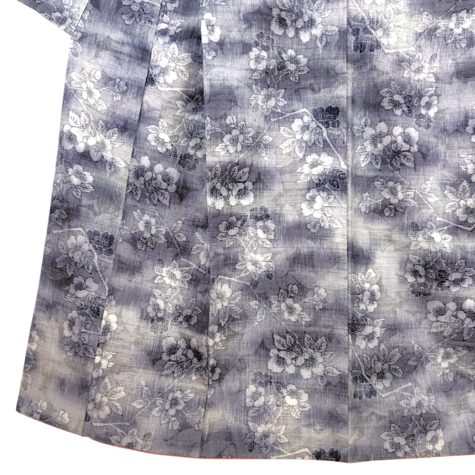 通年着られるグレーのベースカラーは、桜や楓の柔らかな柄が施されており、季節感を演出します。
