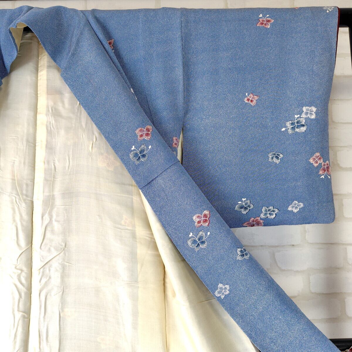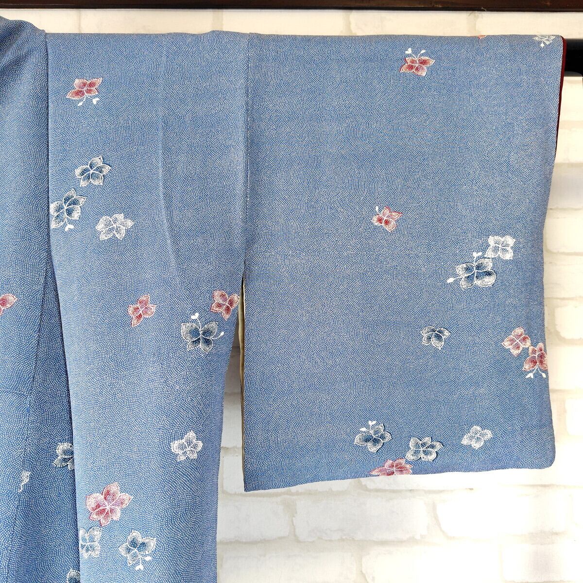 美しい花散らしと蝶をデザインしたこの着物は、あなたの装いに特別な魅力をプラスします。