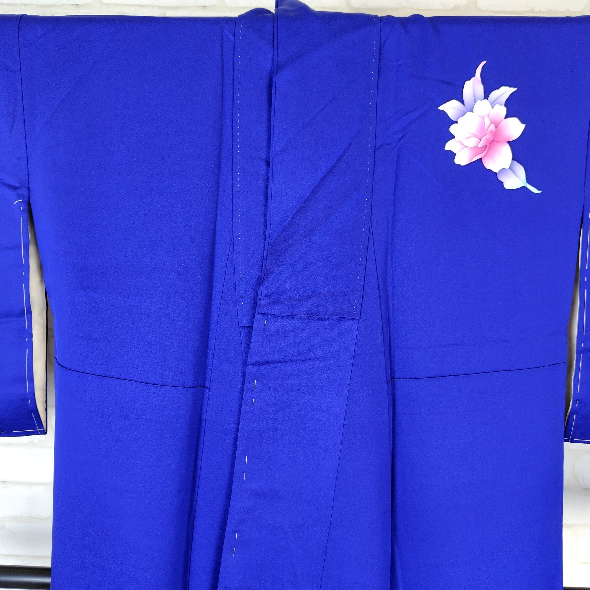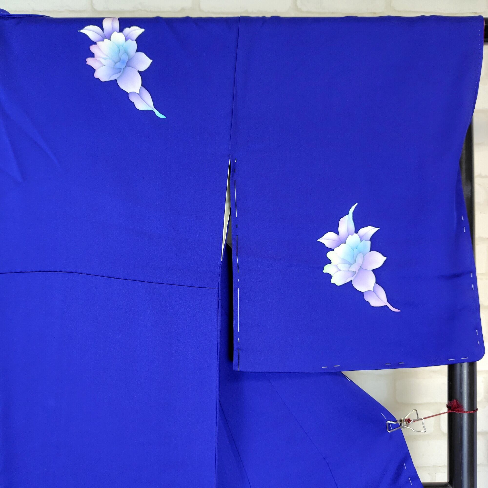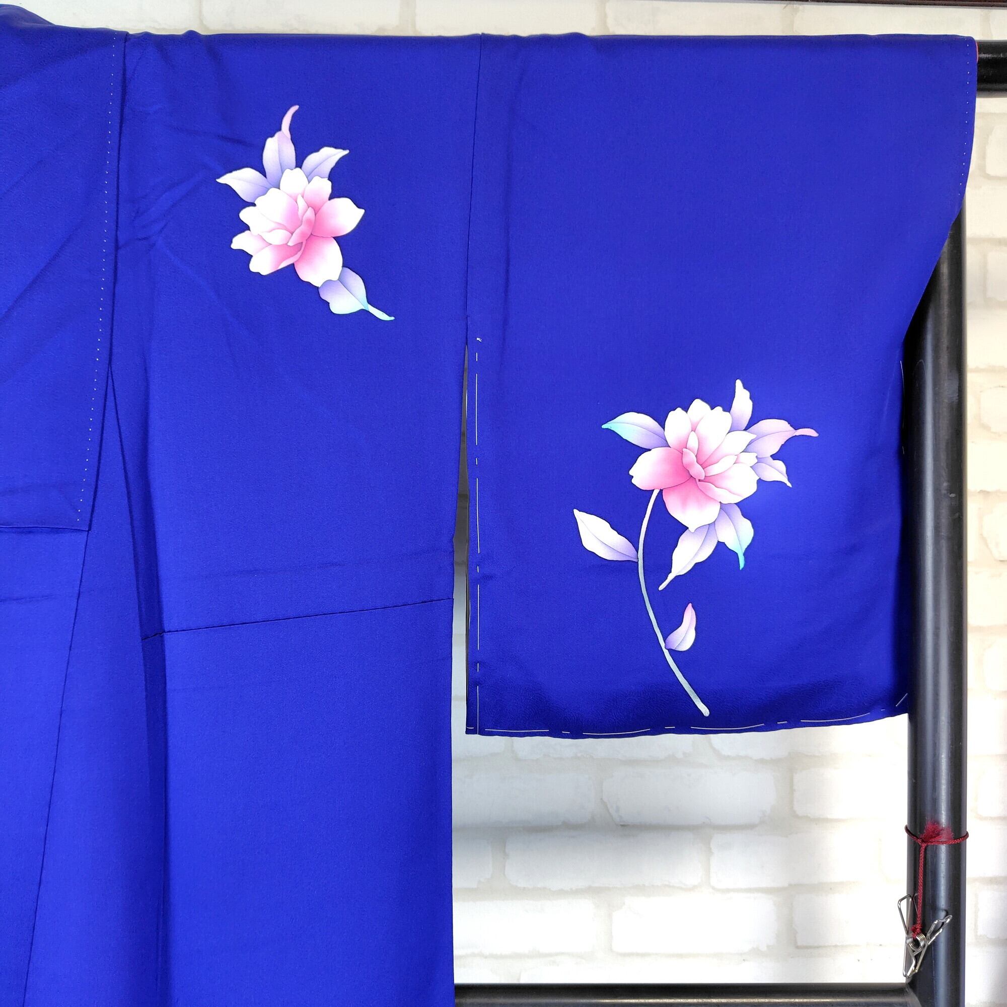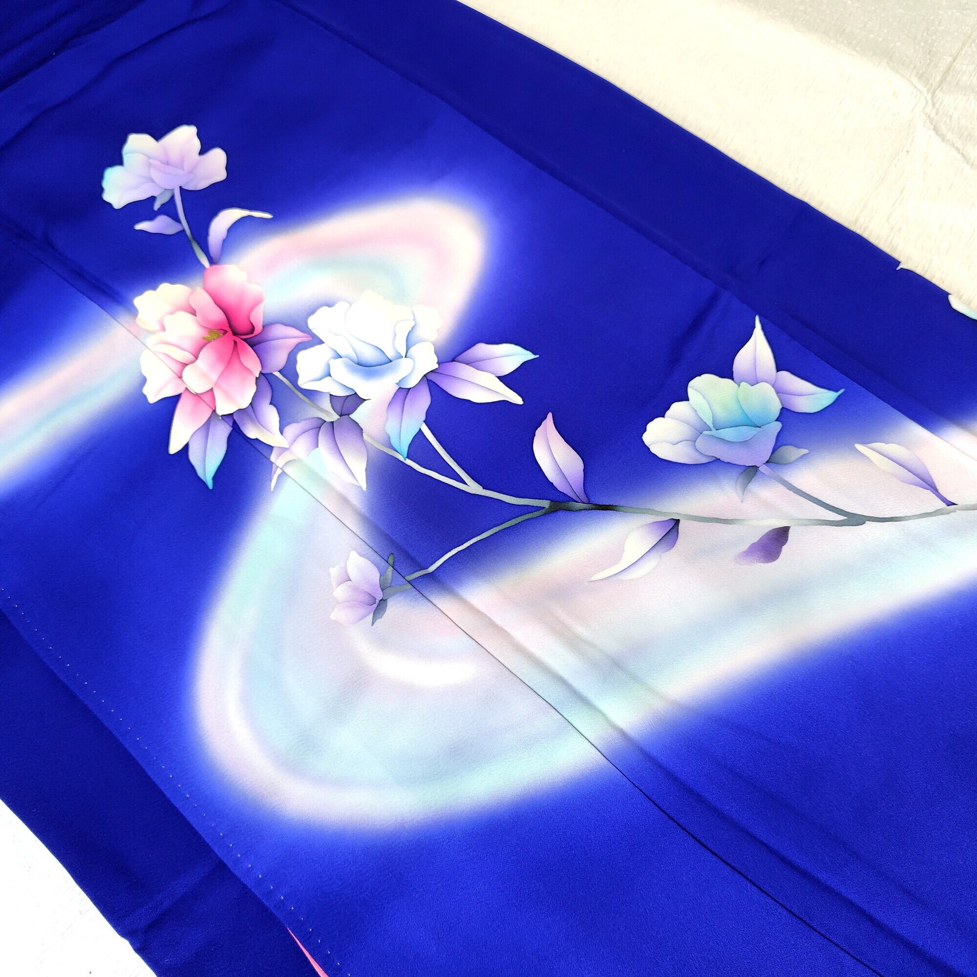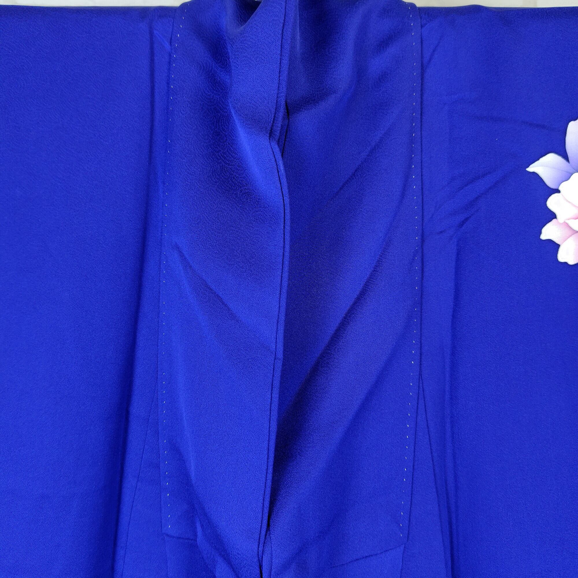 美しいロイヤルブルーに暈し染めが施された、手描きの牡丹柄が特徴的な附下のリユース着物が登場しました♪