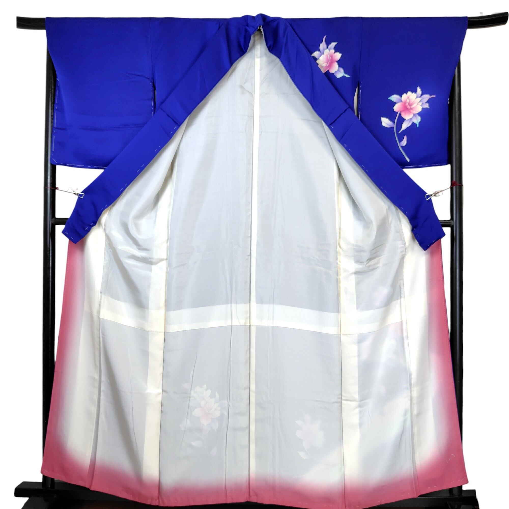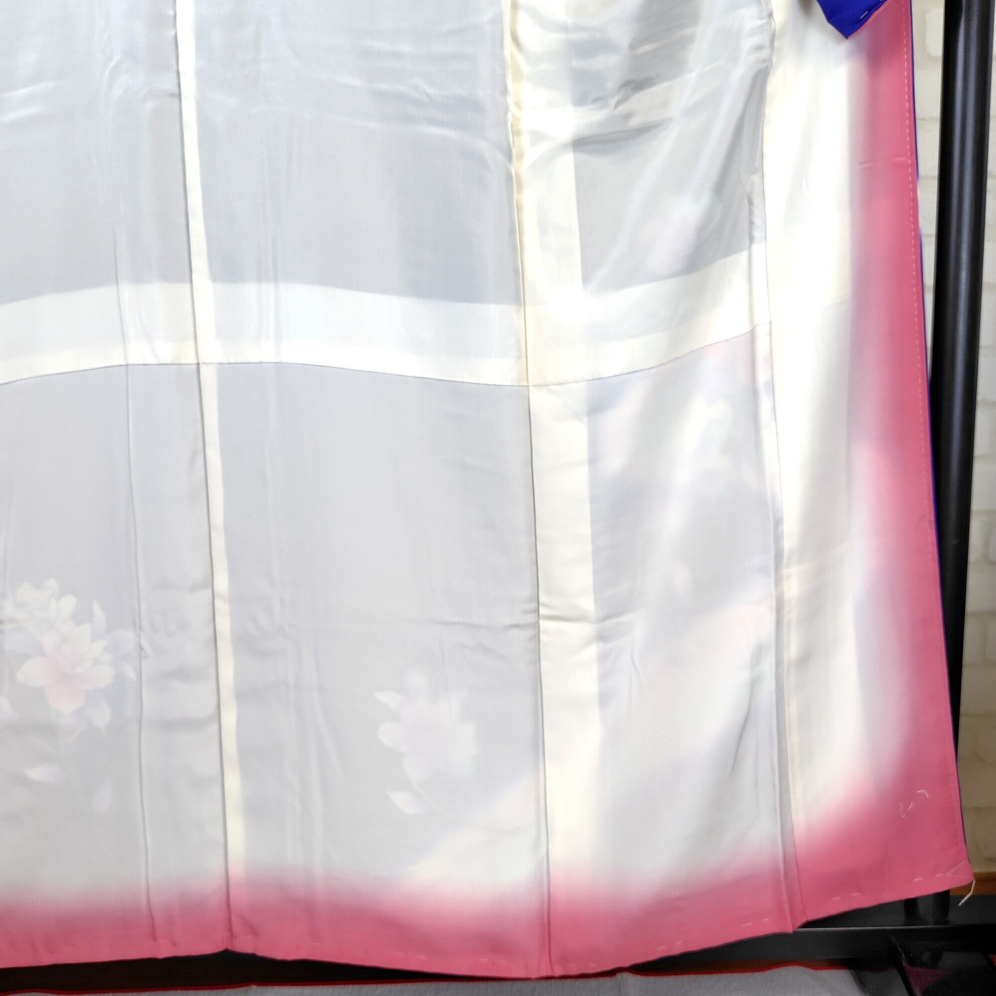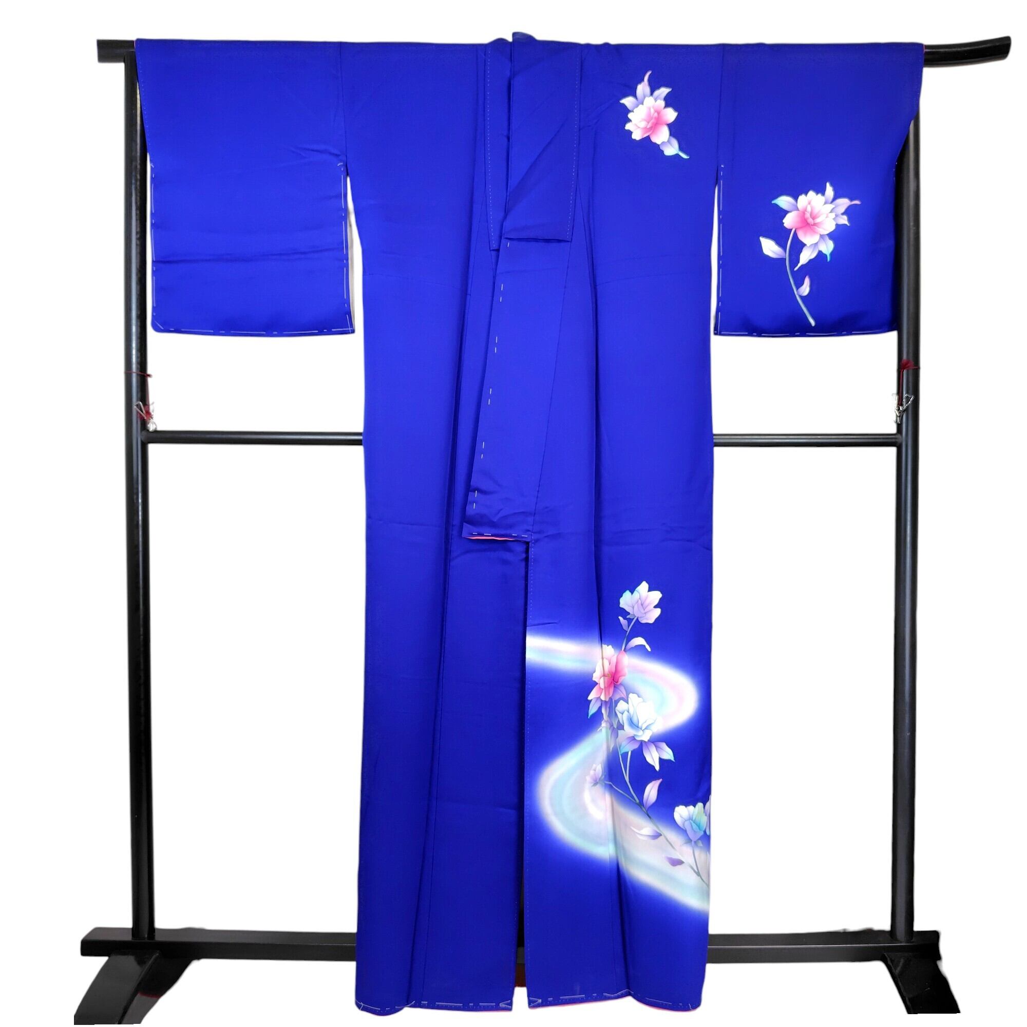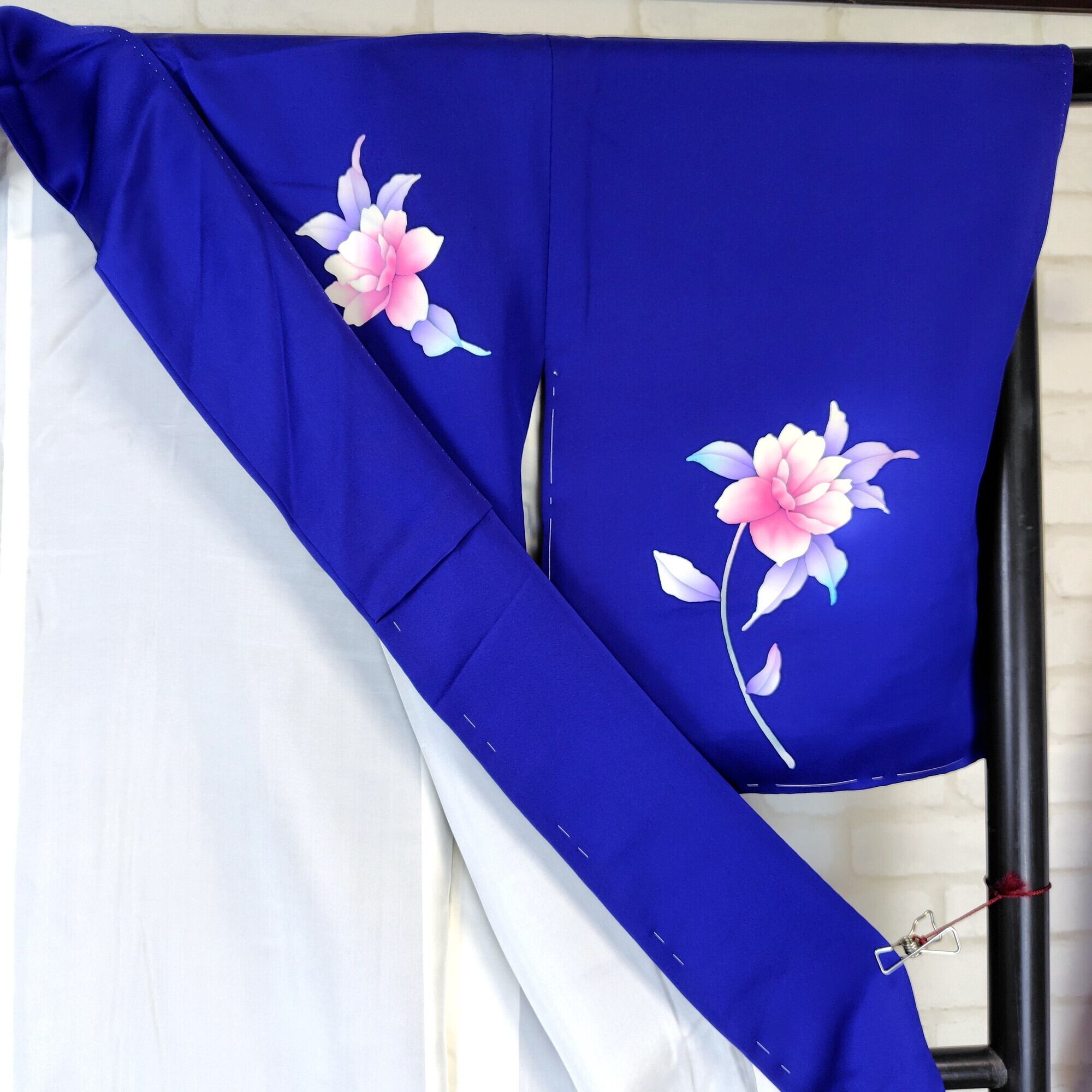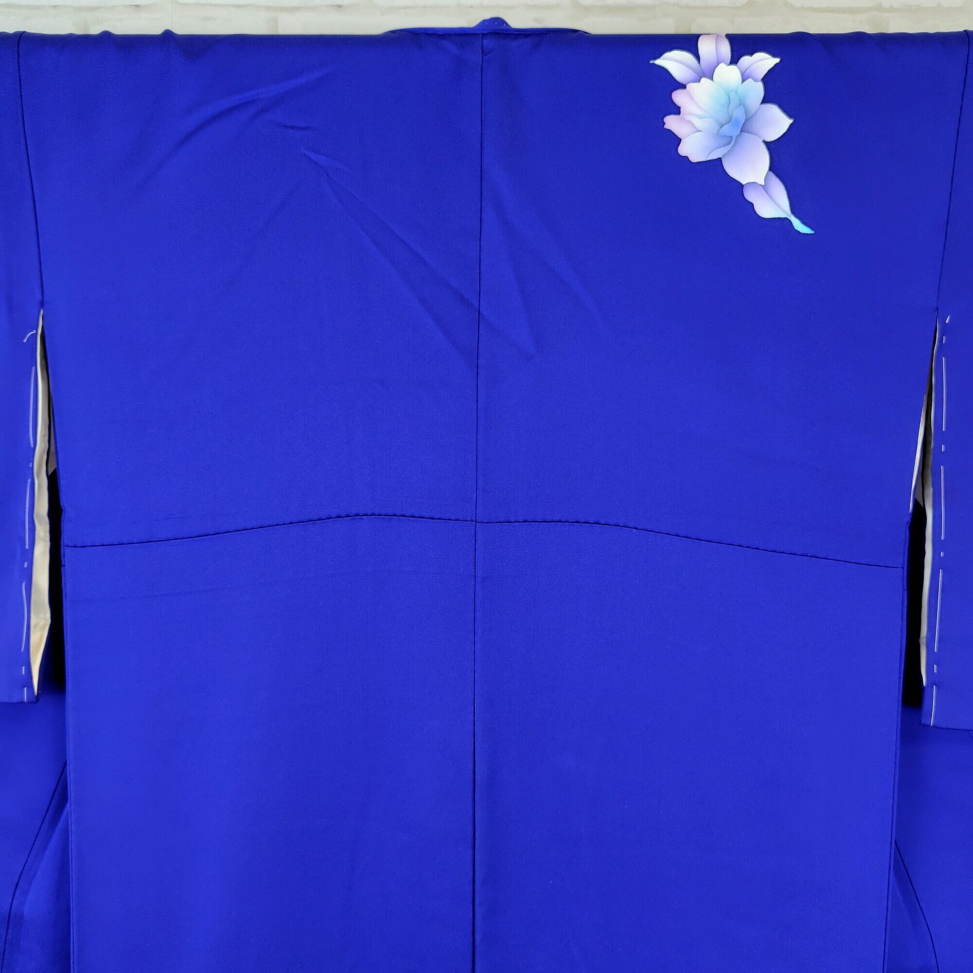 美しいロイヤルブルーに暈し染めが施された、手描きの牡丹柄が特徴的な附下のリユース着物が登場しました♪